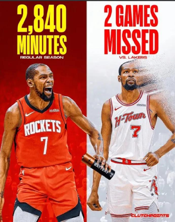 火箭有自己的锡伯杜,明知杜兰特有伤在身且是37岁老汉,乌度卡竟然还让他在G2长时间作战导致伤势加重;常规赛期间,杜兰特出战78场比赛,场均上阵36.4分钟贡献26分5.5板4.8助,投篮命中率52%,总出场时间2840分钟联盟第二多。