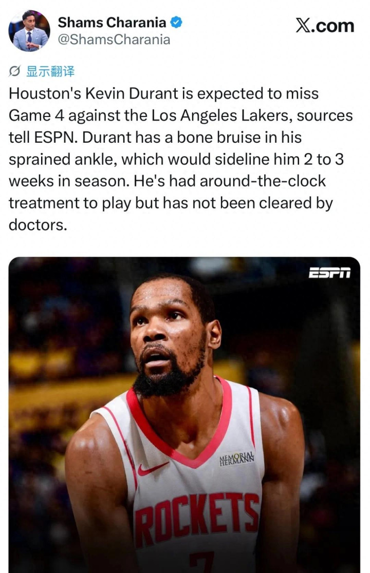 值得一提的是,如今外面有很多阴谋论,尤其看到G3火箭主场作战杜兰特却没有出现在场边,如下: